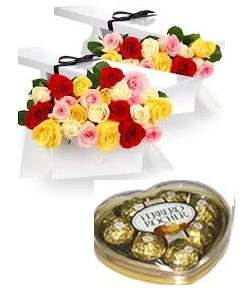 18 Multicolored Roses w/ferrero18 Multicolored Roses w/ferrero red pink orange pomelo peach
