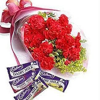 Bouquet carnation With Cadbury10 Carnations Bouquet With Cadbury Chocolates (4*65 grm).