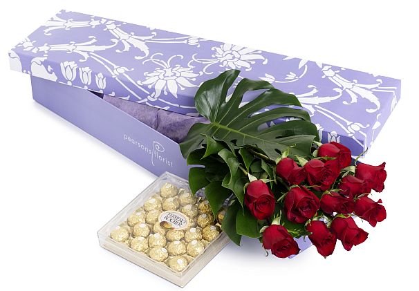 Desire RosesBeautiful long-stemmed red roses and a box of luxury chocolates 24 pcs ferrero.