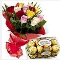 Mix Roses With Ferrero Rocher12 Mix Roses With Ferrero Rocher Chocolate Box