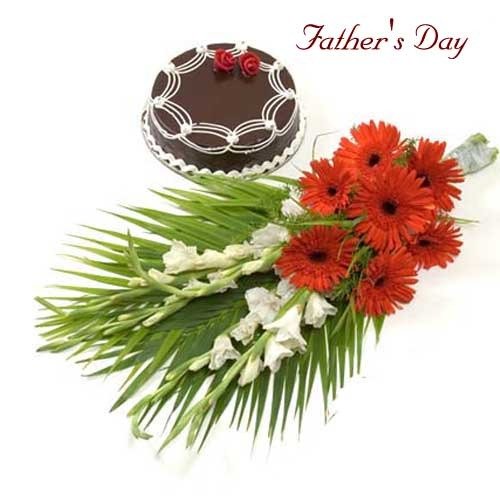 A Perfect PoetryBunch of vibrant orange gerberas and mix flower with chocolate cake.