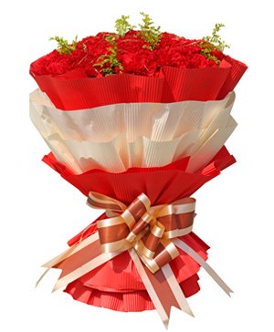 Attachment of InfantAttachment of Infant contains 33 red carnations with solidago. Red, white paper wrapped and finished with bowknot.