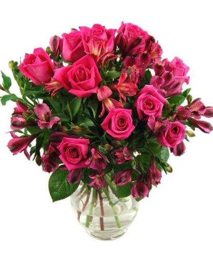 HOT PINKA bouquet in hot pink, featuring pink roses and alstromelias. Vase is not included.