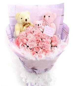 Morning and Evening12 pink roses, 12 pink carnations