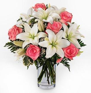 SEDUCTIVEA classical floral bouquet with pink roses and white lilies. Vase is not included.