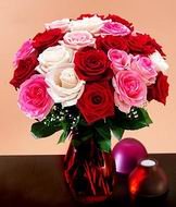 I Wanted To Send U...A bright gift for your loved one to say how close he/ she is to your heart. 12 red, 12 pink and 12 white roses in a vase.