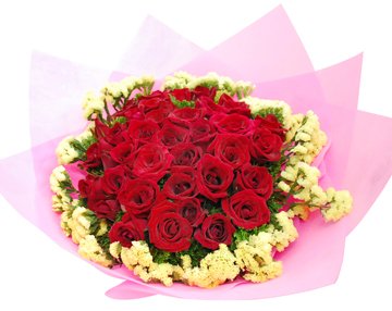 Rose Hand Bouquet 0436 stalks red color roses with light pink wrapping paper