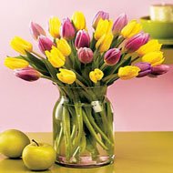 I'm always near to you20 pieces blue and yellow tulips are arranged in a glass vase just perfect for your love one. Note: Color may vary.